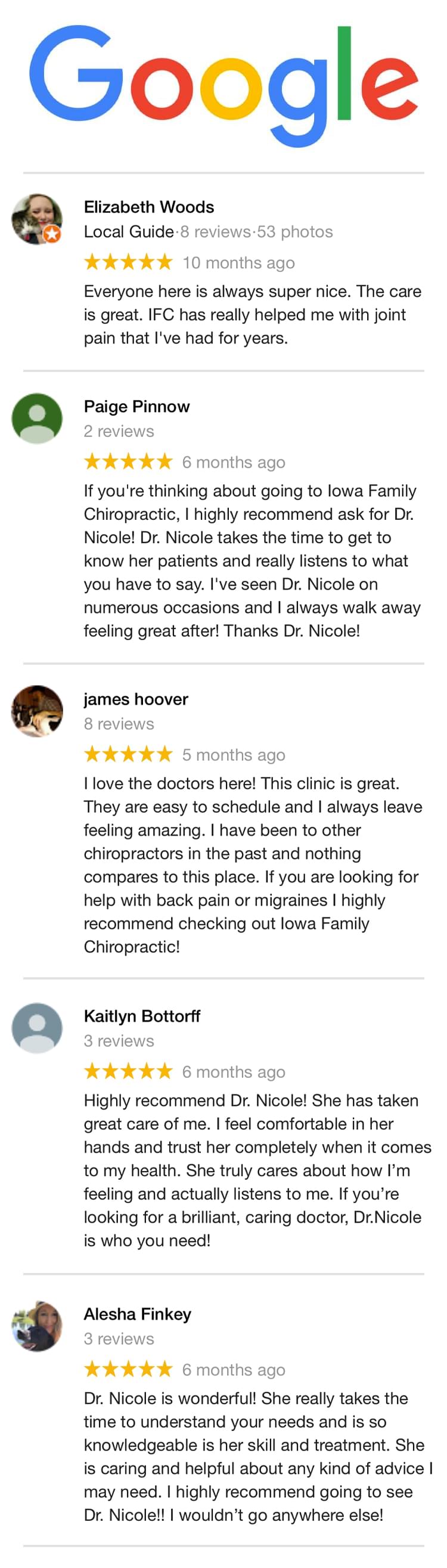 The difference at Iowa Family Chiropractic is simple but BIG. Our goal is simply to help YOU meet YOUR health and wellness goals. We provide a truly comprehensive approach to solving common problems. We provide our patients with the very best of chiropractic, rehab, nutrition and more!